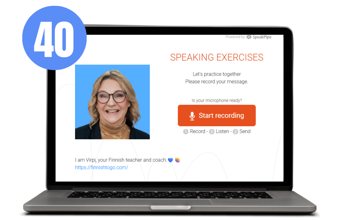 Practice speaking to 40+ prompts and get personal voice feedback from Virpi