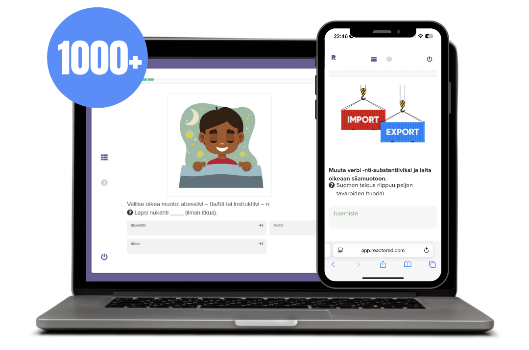 Practice your new Finnish skills with instant feedback