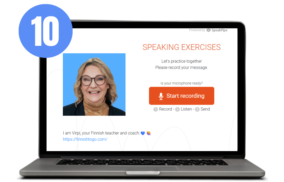 Practice speaking to 10 prompts and get voice feedback from Virpi