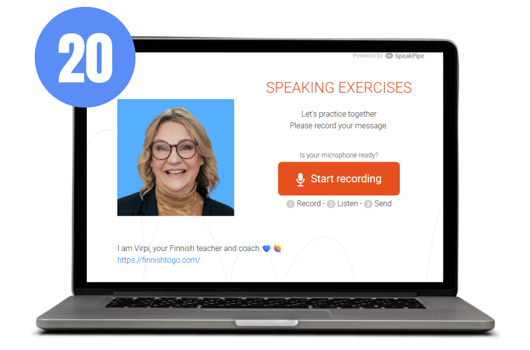 Practice speaking to 20 prompts and get voice feedback from Virpi