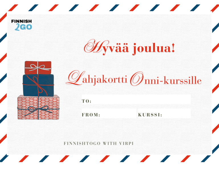 Get personalized gift certificateto print or send digitally for one Finnish course